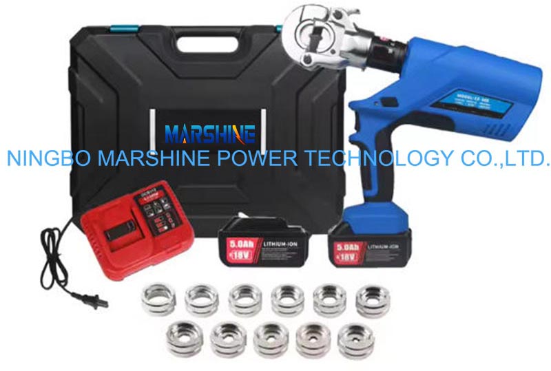 Mit einer Nennausgangsleistung von 60 kN können hochintegrierte Verbindungen auch bei großen Aluminium- oder Kupferleitern gewährleistet werden. Dies ist das batteriehydraulische Crimpwerkzeug MARSHINE EZ-300. Dieses Werkzeug ist mit den Steckergrößen von 16 mm² bis 300 mm² kompatibel und kann somit Kabel unterschiedlicher Querschnitte aufnehmen. Die Schnellladezeit beträgt ca. 1,5 Stunden, so dass dieses Werkzeug für mehrere Crimparbeiten pro Tag bereit ist. Das hydraulische Crimpwerkzeug wiegt nur 4,8 kg, sein leichtes Design ist in der Lage, die Ermüdung des Bedieners zu reduzieren und gleichzeitig die Leistung auf Industrieniveau beizubehalten.