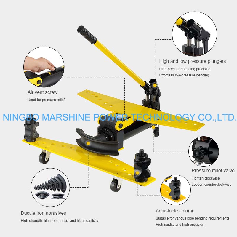 Dieses manuelle hydraulische Rohrbiegegerät SWG von MARSHINE ermöglicht die Verwendung einer Vielzahl von Biegewerkzeugen für verschiedene Rohrdurchmesser, die im Bau- und Elektrobereich usw. verwendet werden.